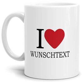 Entdecke die I Love Tasse, die du ganz nach deinen Wünschen gestalten kannst. Diese hochwertige Fototasse aus Keramik bietet dir die Möglichkeit, einen persönlichen Text hinzuzufügen. Klicke einfach auf Anpassen, um deine individuelle Botschaft zu kreieren.