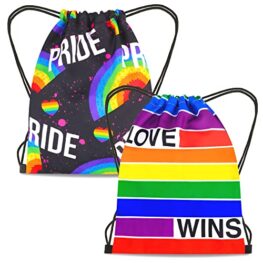 Entdecke die HOWAF 2 Stück LGBT Gay Pride Turnbeutel, ideal für alle, die ihren Stolz zeigen möchten. Diese Turnbeutel sind mit bunten Designs der Regenbogenflagge, Herzen und inspirierenden Sprüchen wie „Liebe gewinnt“ versehen. Sie kombinieren Stil und Funktionalität und sind mit hochwertigen schwarzen Kordeln und Metallösen ausgestattet.
