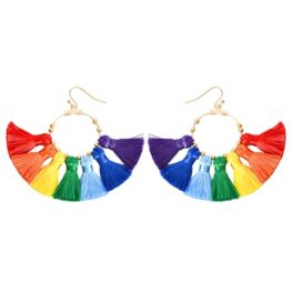 Das Retro-Design kombiniert geschickt ethnische Elemente mit modernen Akzenten, wodurch diese Ohrringe zu einem einzigartigen Schmuckstück werden. Die handgefertigten Quasten in leuchtenden Regenbogenfarben machen sie zur idealen Wahl für alle, die personalisierten Schmuck lieben.