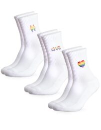 Mit flachen Nähten und druckfreien Gummibünden bieten die Socken maximalen Komfort und verhindern das Verrutschen. Der hohe Baumwollanteil sorgt zudem für ein angenehmes Fußklima und wirkt geruchshemmend. Dank der lebendigen Farben, inspiriert von der Regenbogenflagge, setzen die Socken ein modisches Statement und feiern die Vielfalt.